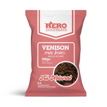 Hero Mini Bones Treats - 100 pieces Hero Mini Bones Treats are the ultimate choice for training treats, thanks to their perfect size. Available in duck, turkey, venison & rabbit! GREAT FOR ALLERGIES - SINGLE INGREDIENT TREATS.