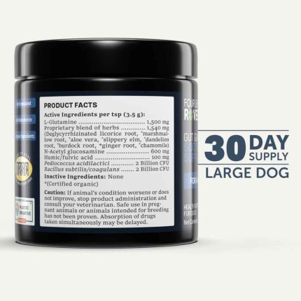 Four Leaf Rover Gut Guard is a veterinary formulated blend of soil-based probiotics and organic herbs that support a healthy gut lining. Every ingredient has been highly researched and carefully sourced by veterinarian Patricia Jordan to help supply beneficial bacteria back into your dogs gut. It can benefit dogs that often struggle with itchy skin, rashes, digestive issues, inflammation disorders and more.