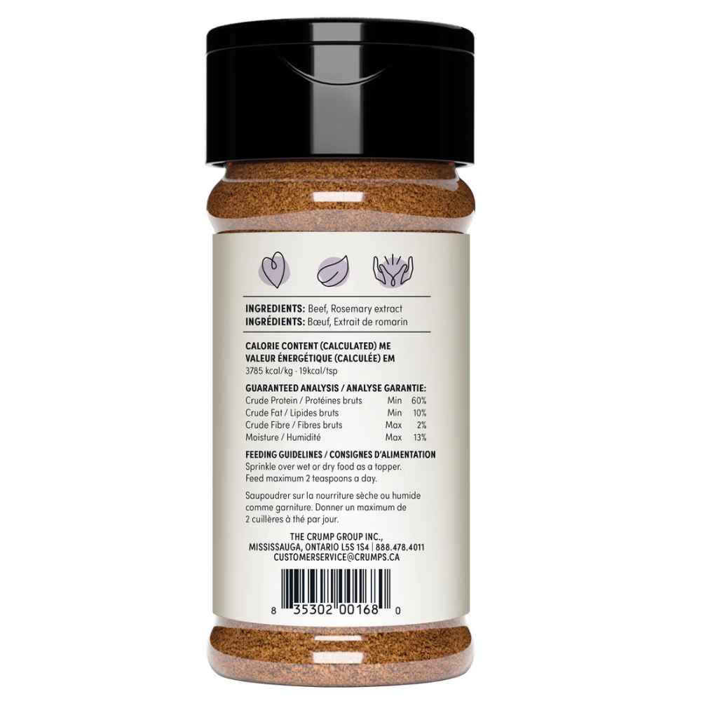 Made from only one ingredient, beef liver, this meal topper is hard to resist. Premium 100% beef liver is ground up into a sprinkle that allows for you to make meal time easy. We created this product from upcycling crumbs from our Traditional Liver. Just sprinkle a little bit or a lot, our Liver Sprinkles are sure to enhance mealtime. Perfect for picky eaters or if you just want to make their bowl a bit more interesting, our Liver Sprinkles are high in iron, zinc and omega 3&6’s.
