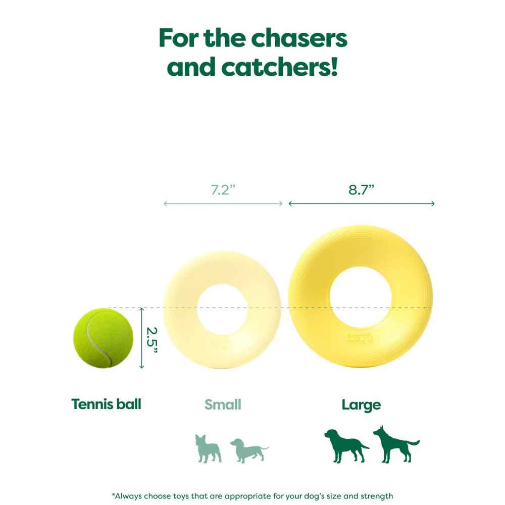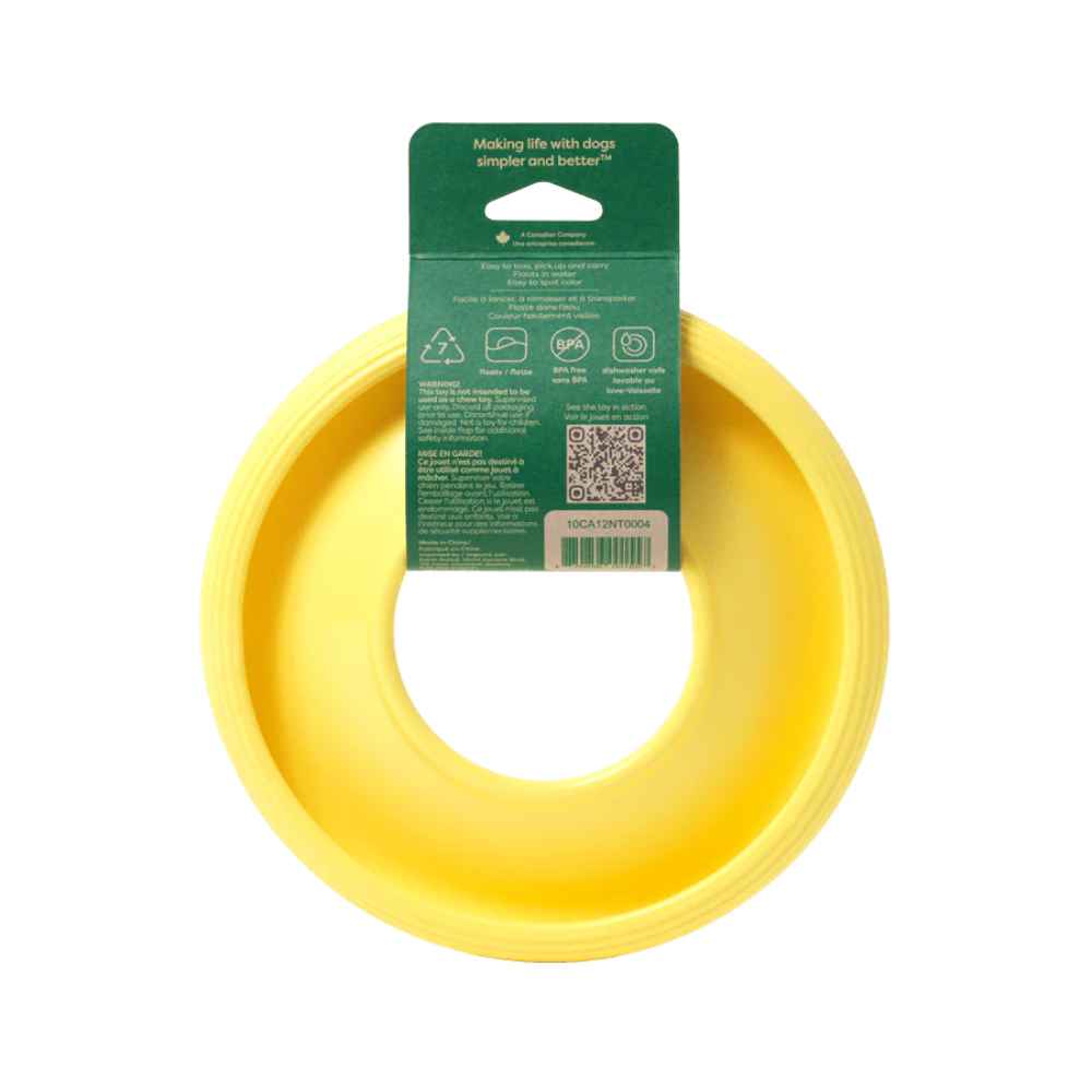 Earth Rated Fly Toy is uniquely designed with a rolled edge making it easy for any dog or person to pick up and play with. The soft material is gentle on your dog’s mouth and your hands! The colour yellow makes it easy for your dog to see. With is light durability, and ability to float, making it the perfect toy for everywhere you and your pooch go!