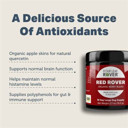 Four Leaf Rover Red Rover is a blend of organic apple skins and berries to supply your dog with critical fiber, antioxidants and phytonutrients , including natural quercetin.- Helps maintain normal histamine levels
